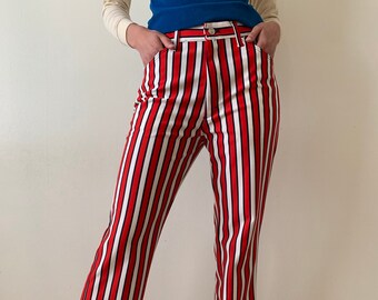 blue white striped pants