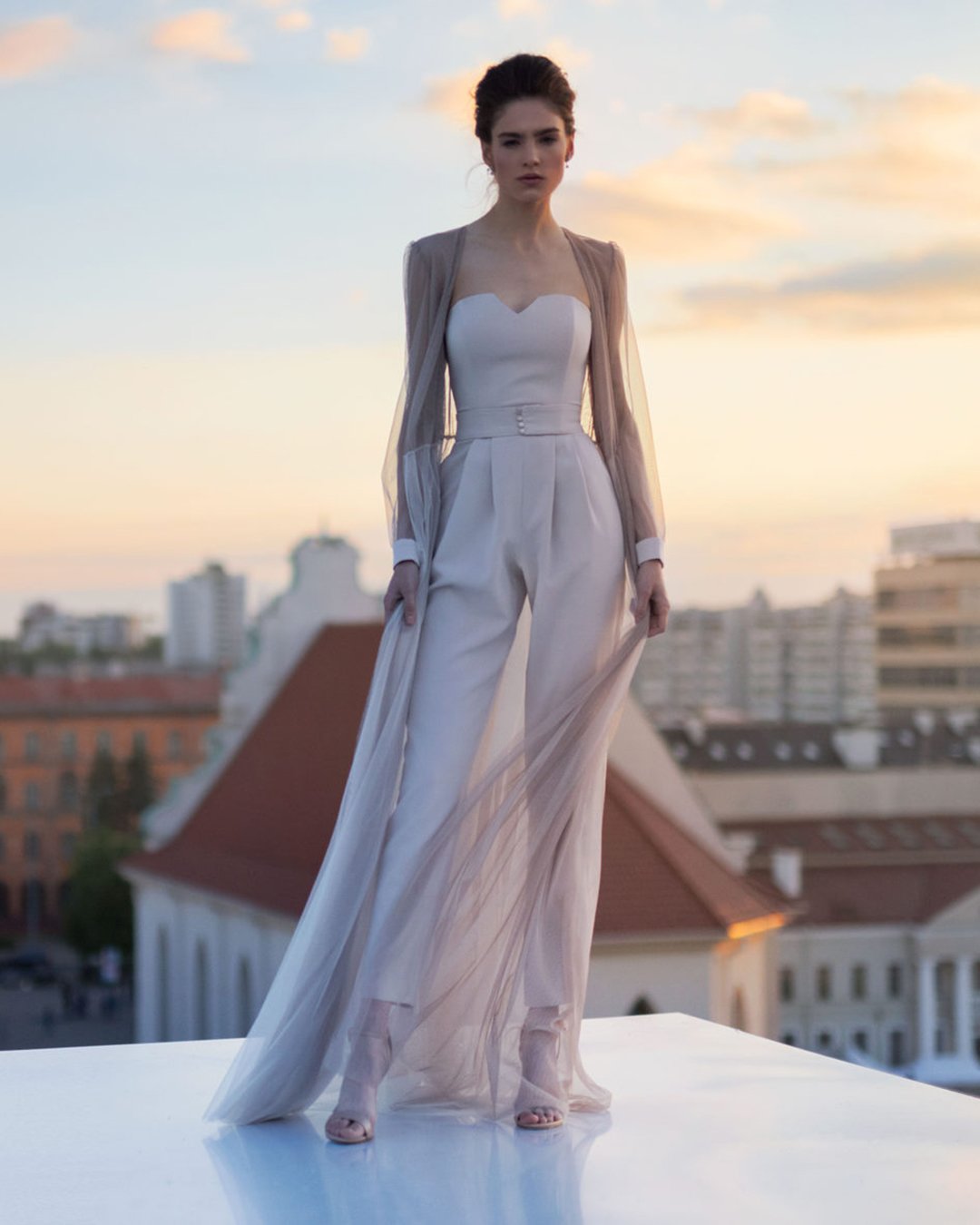 blush pantsuit for wedding