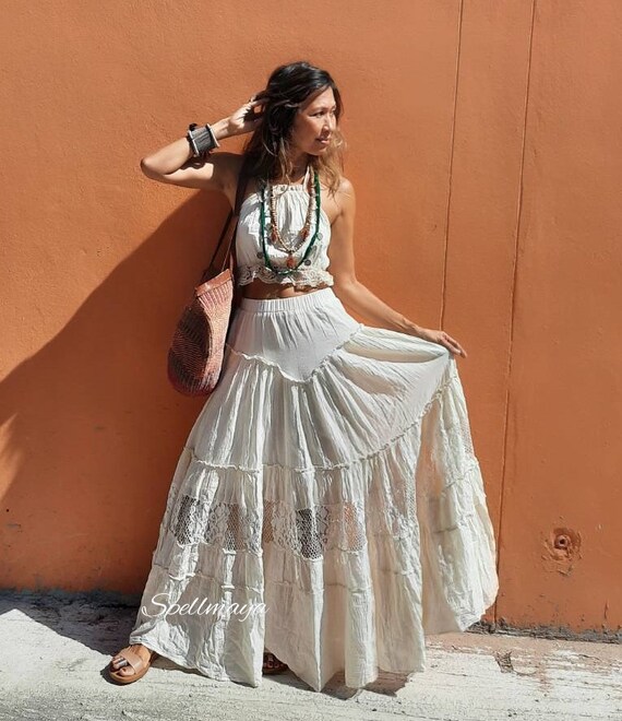 boho white maxi skirt