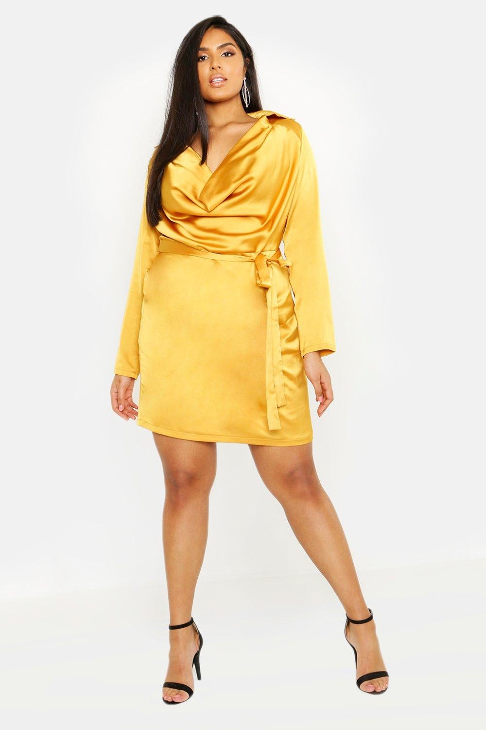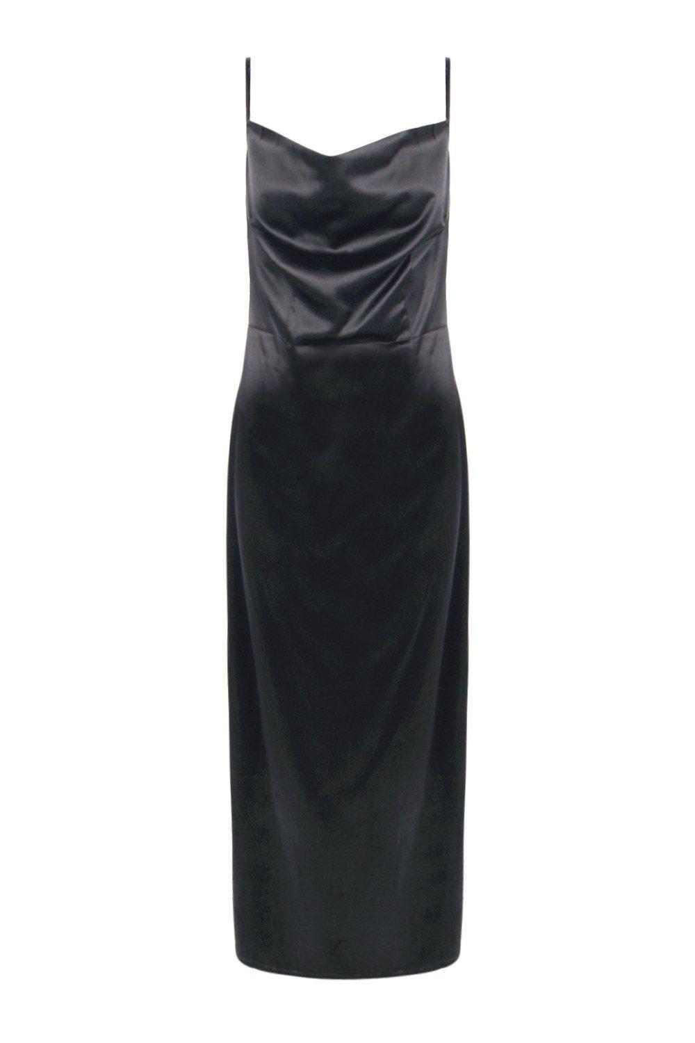 boohoo satin cowl neck dress