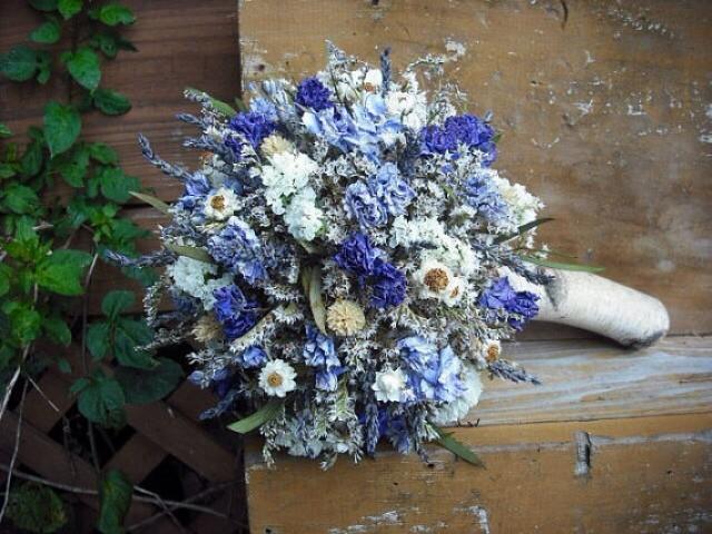 bridal bouquet with blue flowers