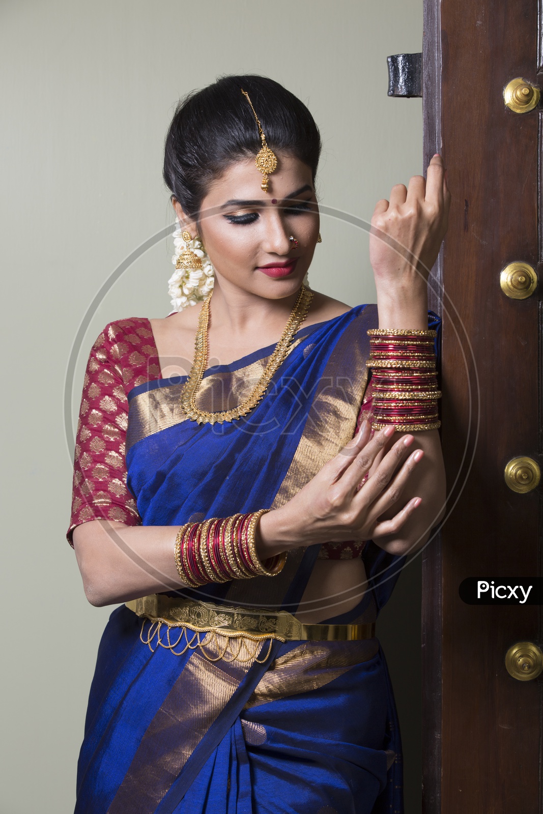 bride in blue saree