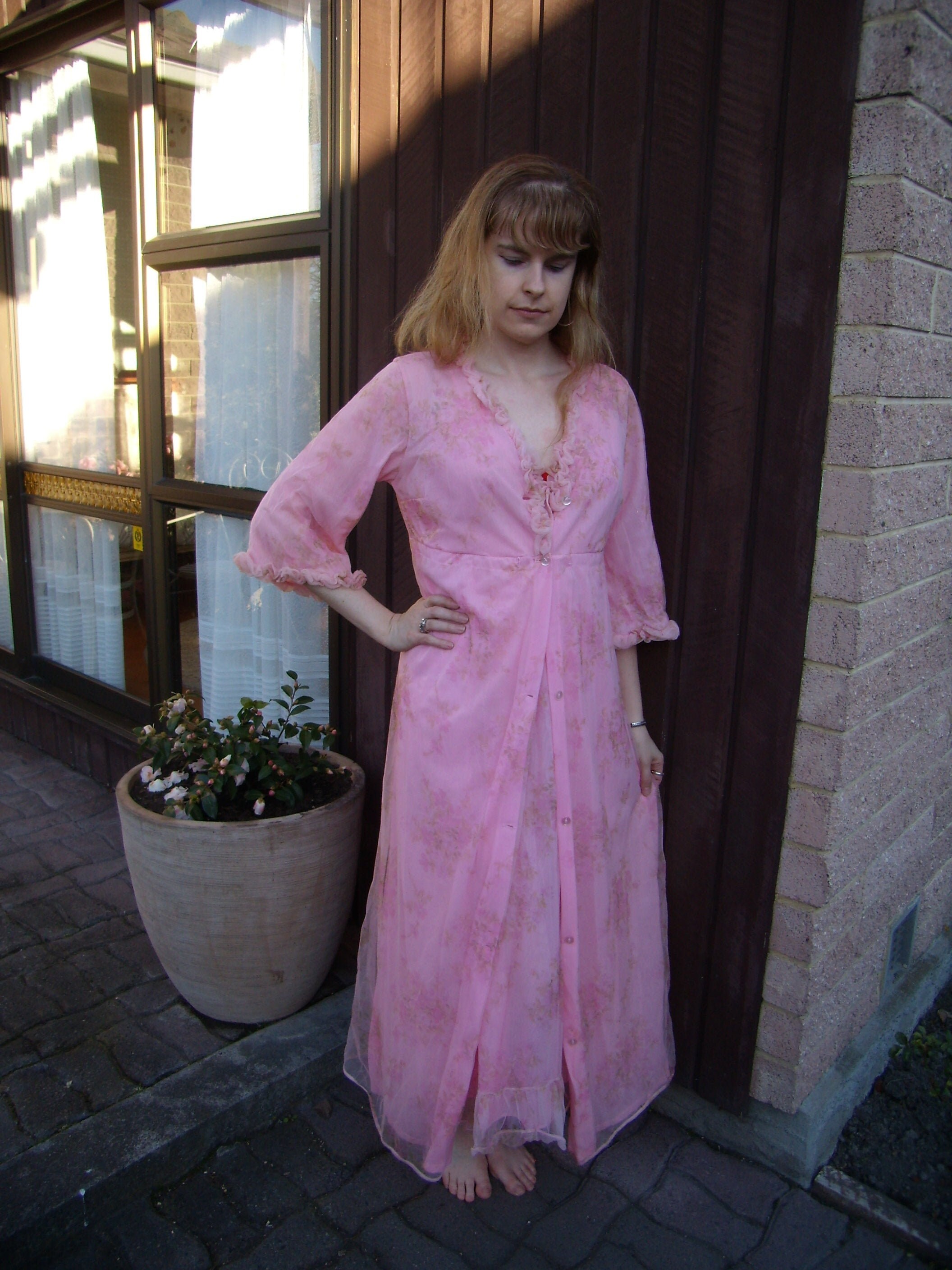 bright pink dressing gown