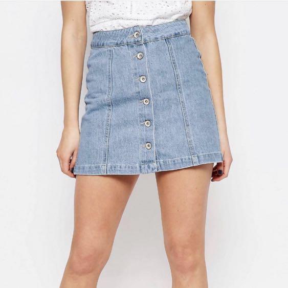 button denim skirt