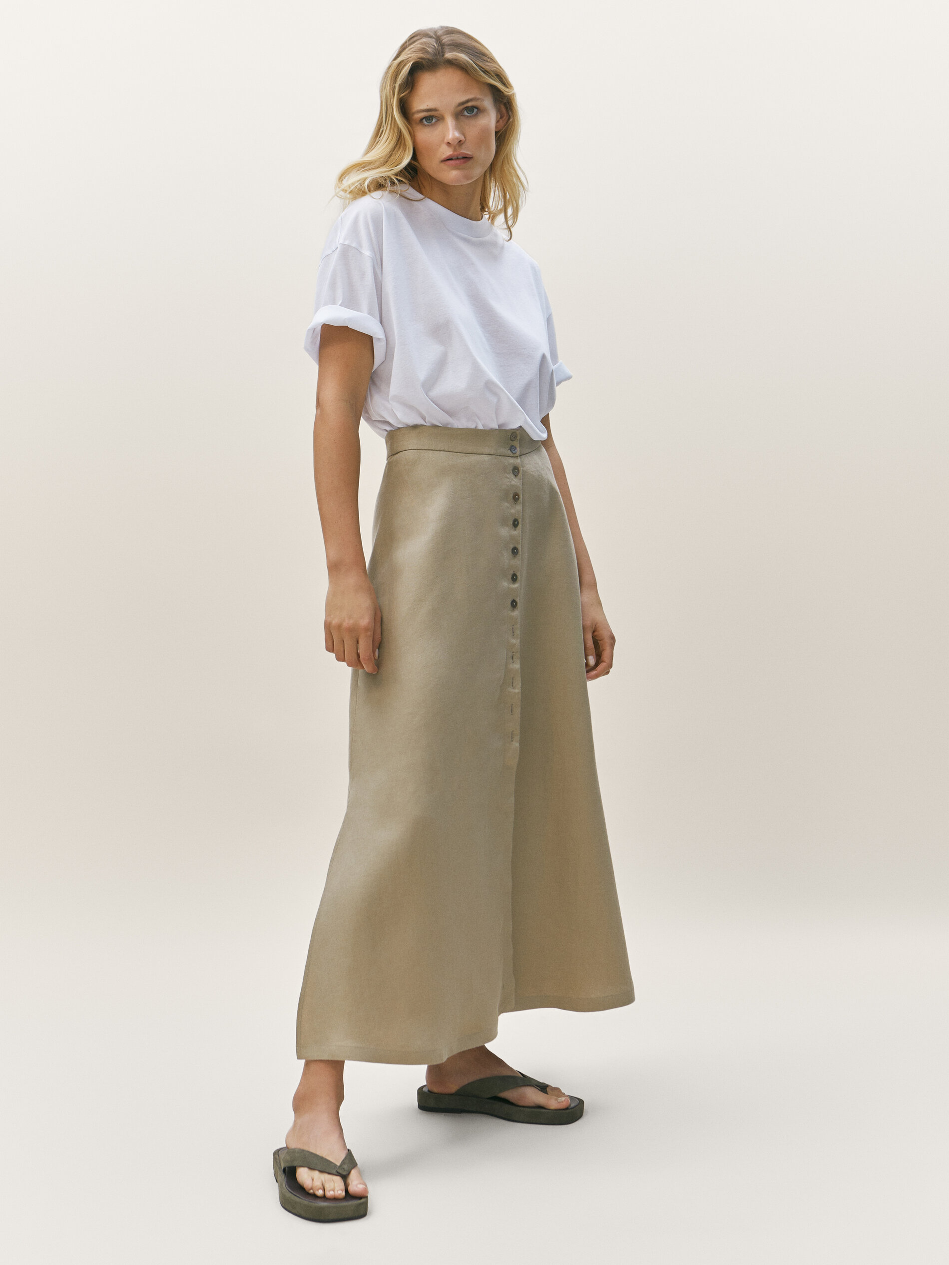 button down linen skirt