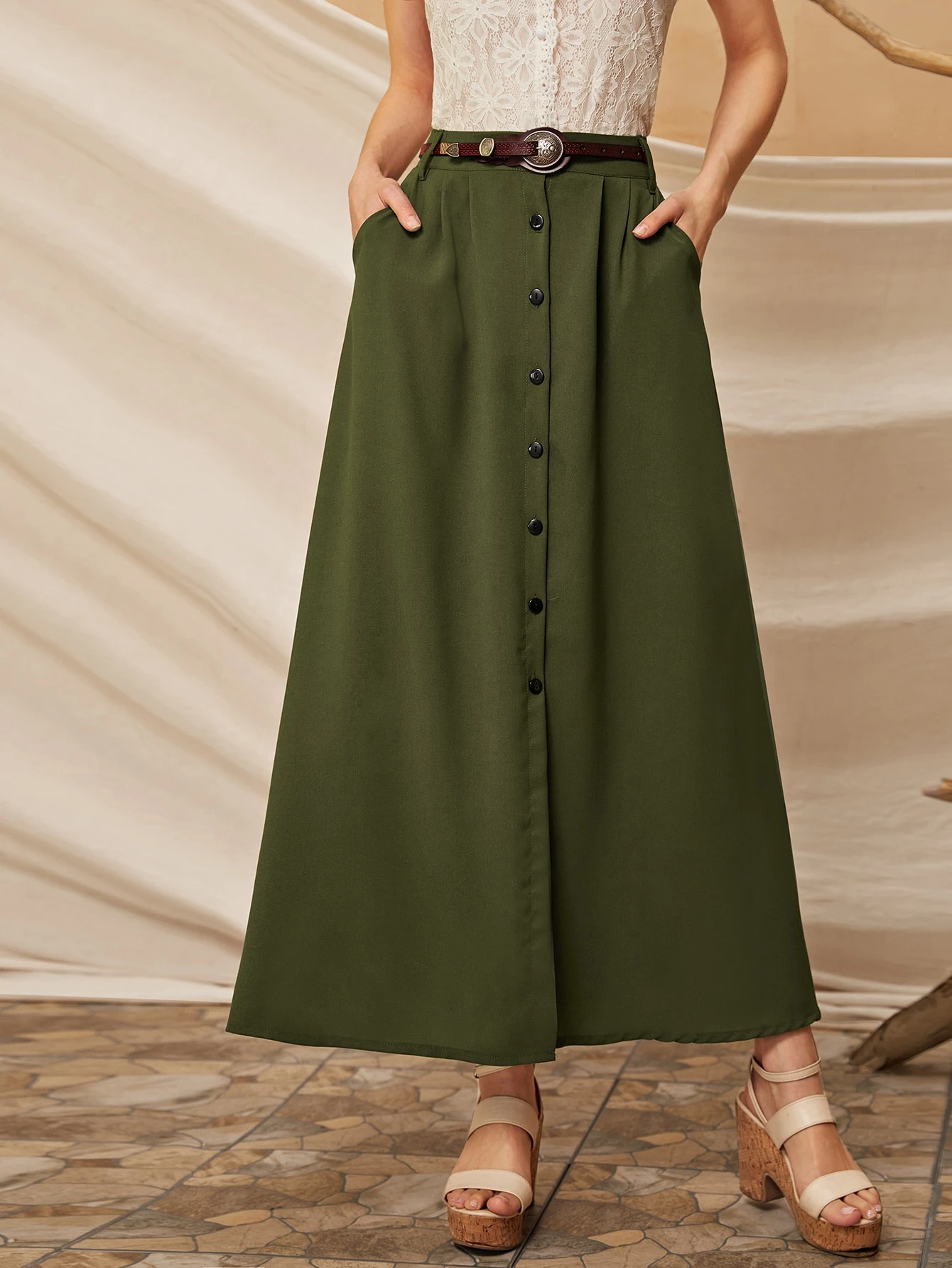 button front a line skirt