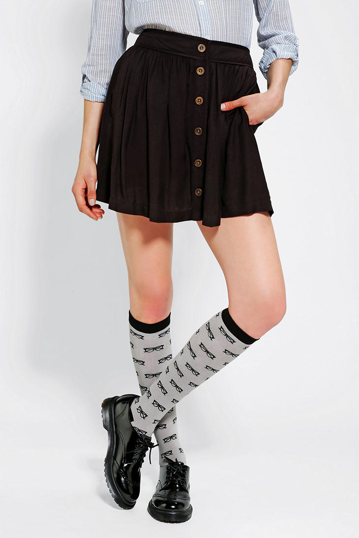 button front black skirt