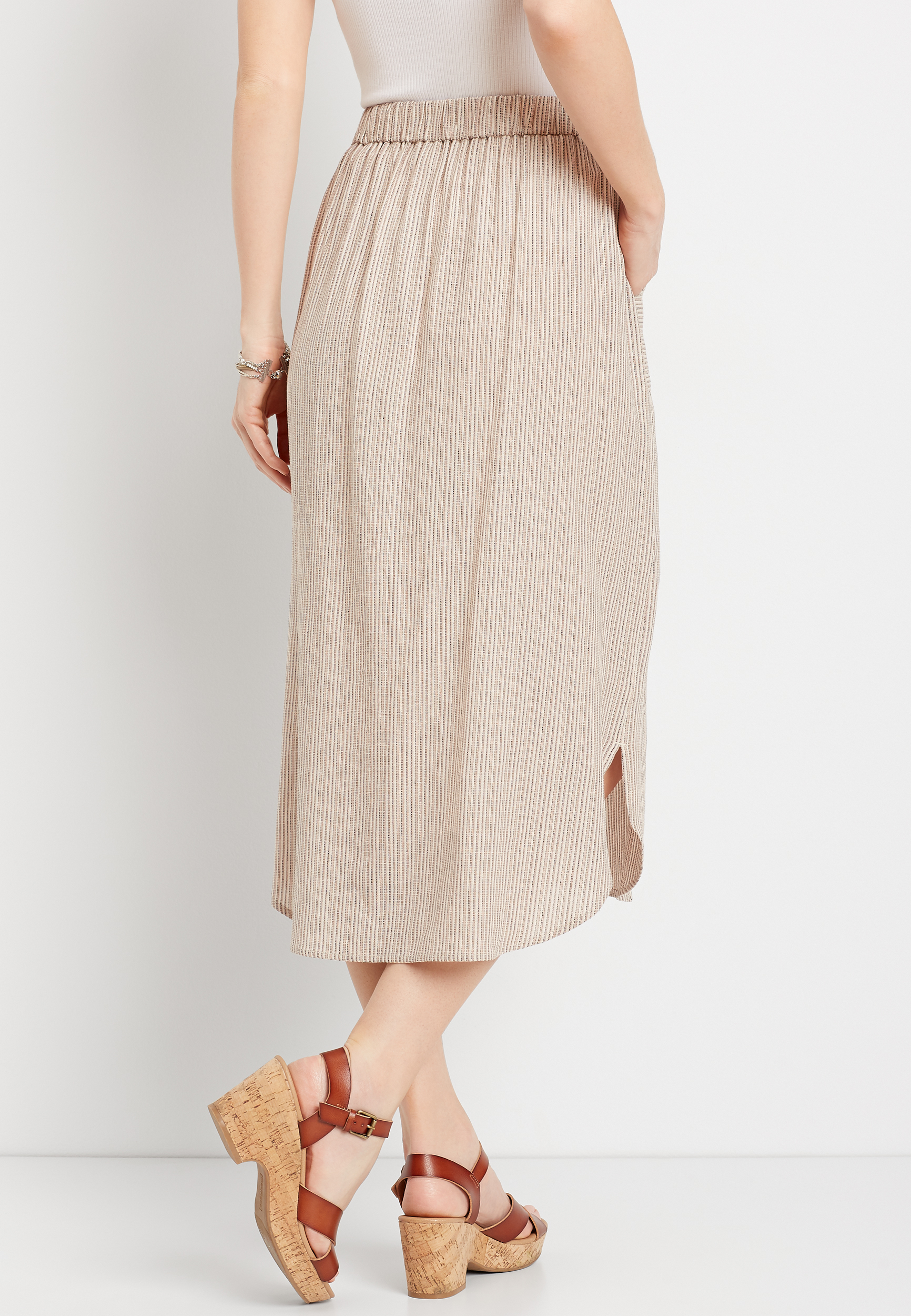 button front linen skirt