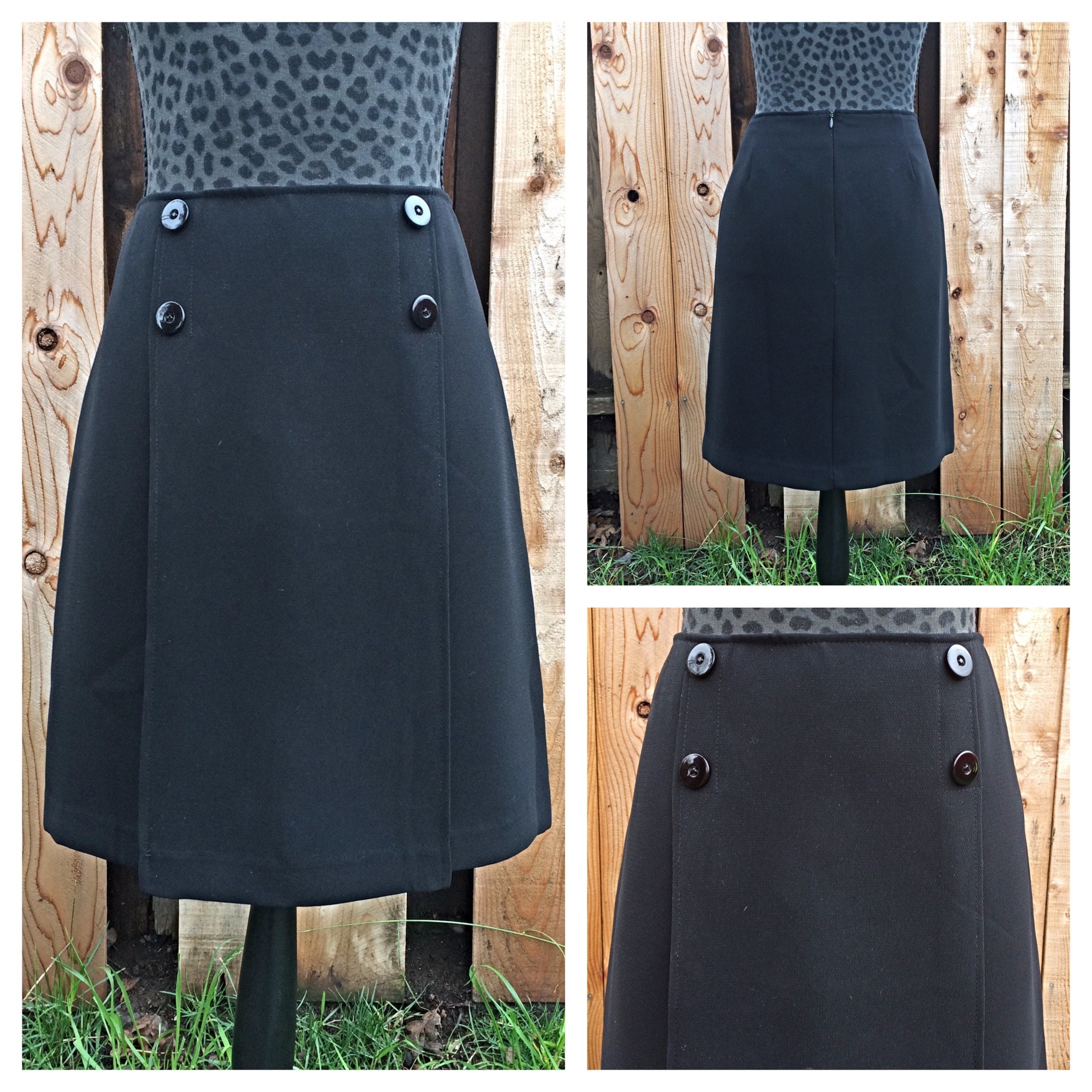 button front skirt black