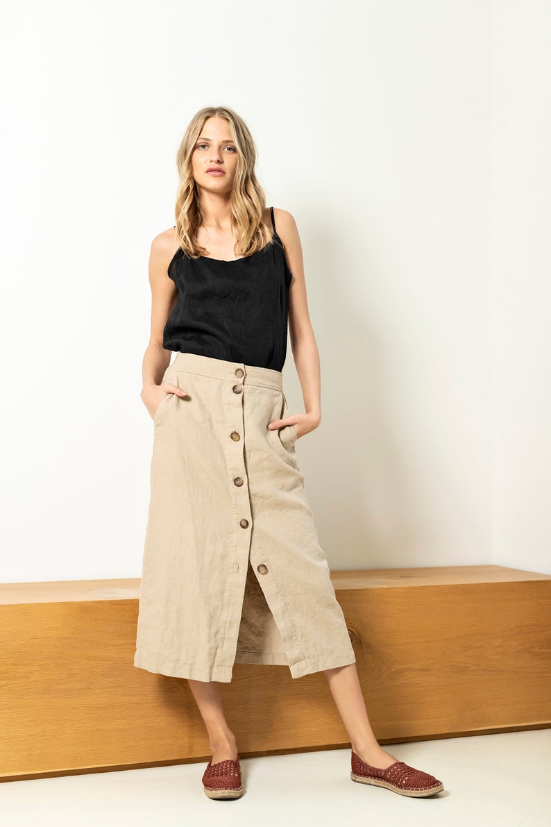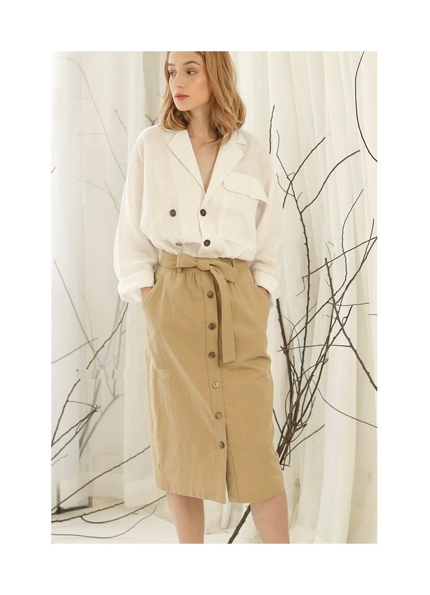 button up linen skirt