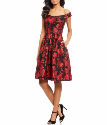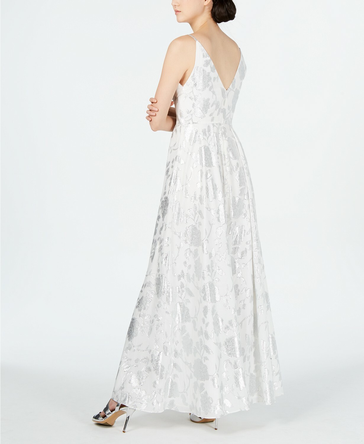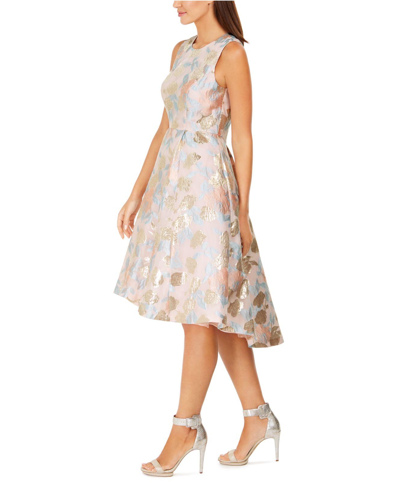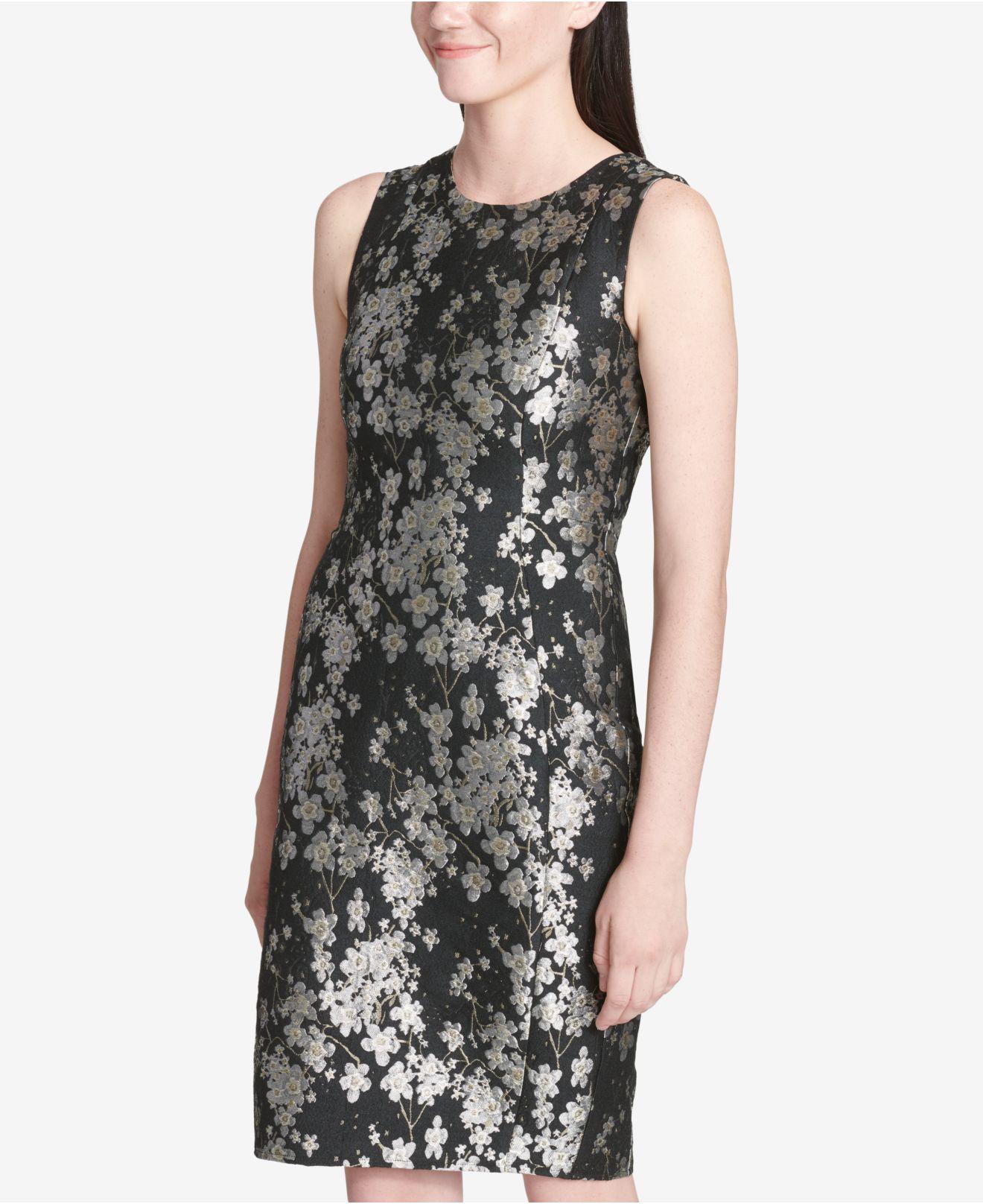 calvin klein metallic floral jacquard dress