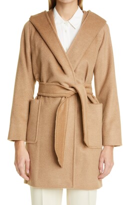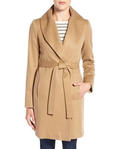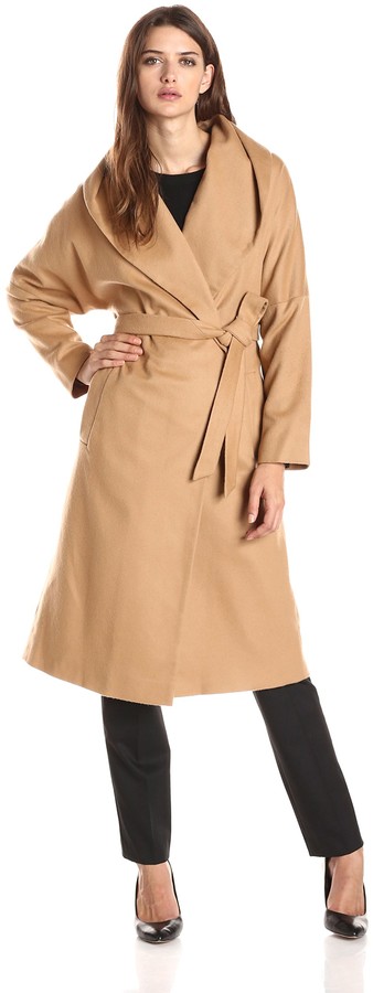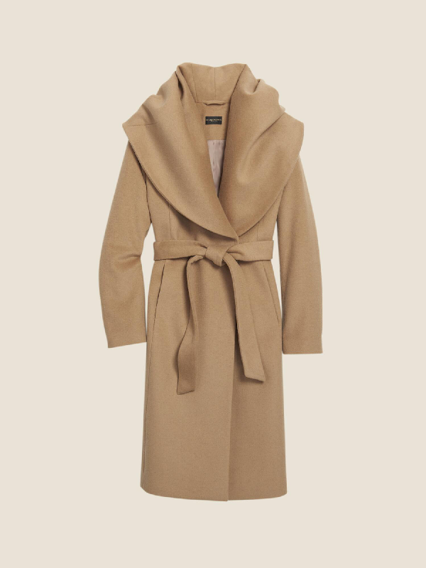 camel shawl collar wrap coat
