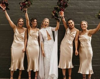 champagne bridesmaid dresses satin