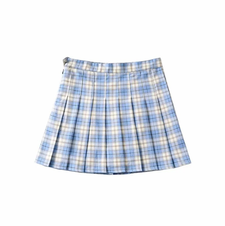 checkered blue skirt