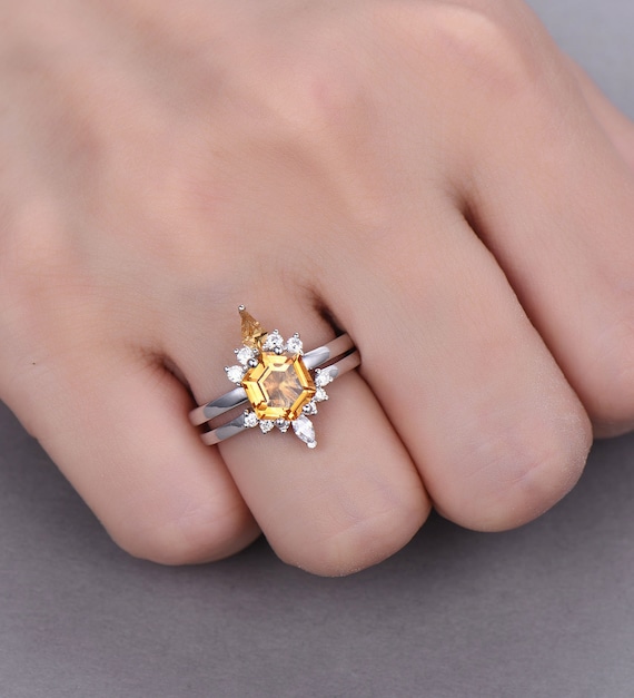 citrine wedding ring set
