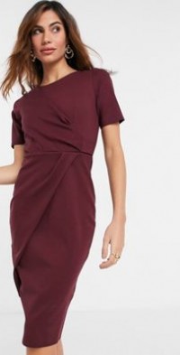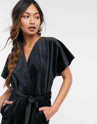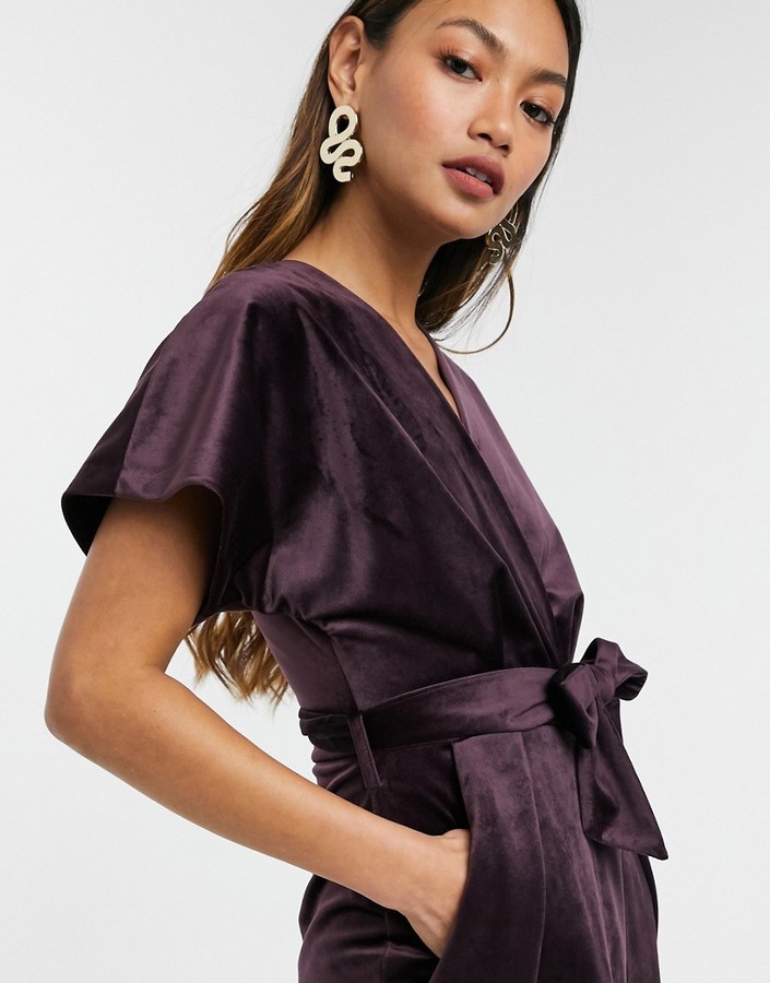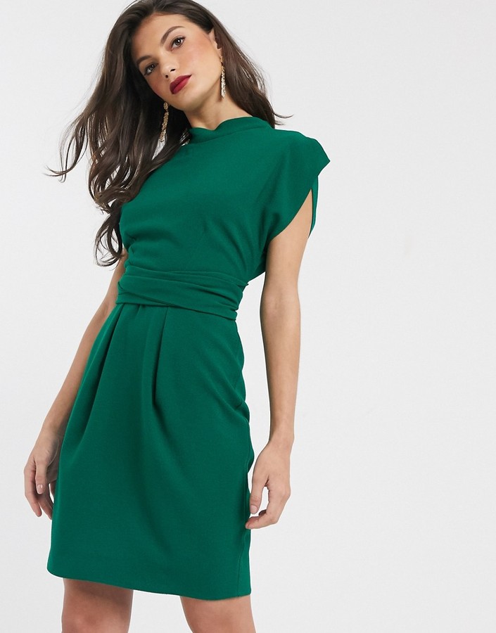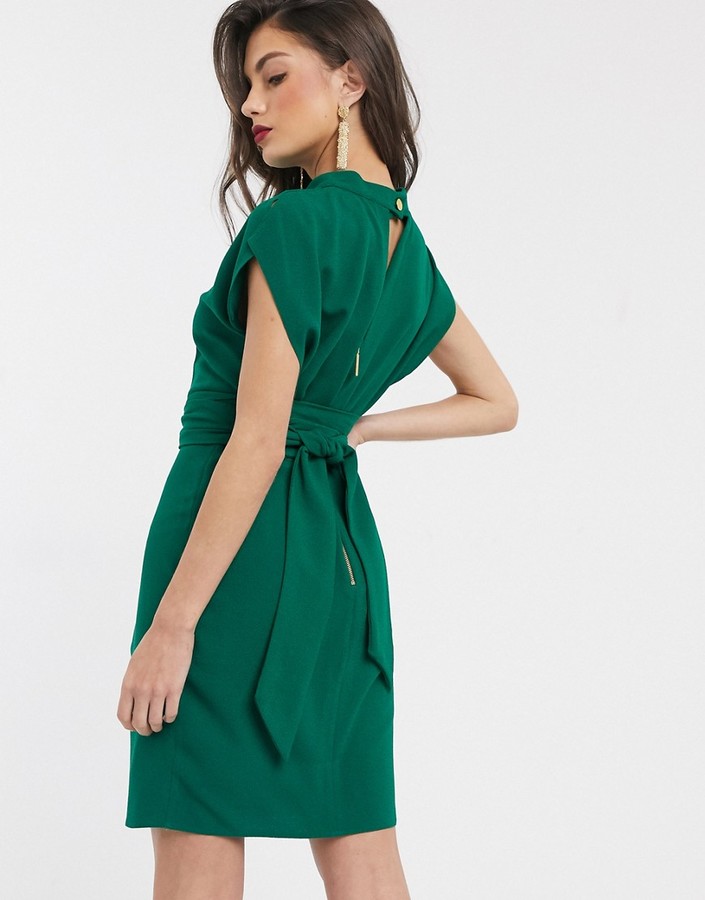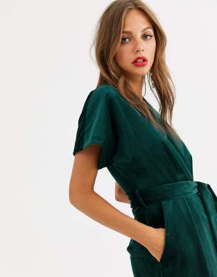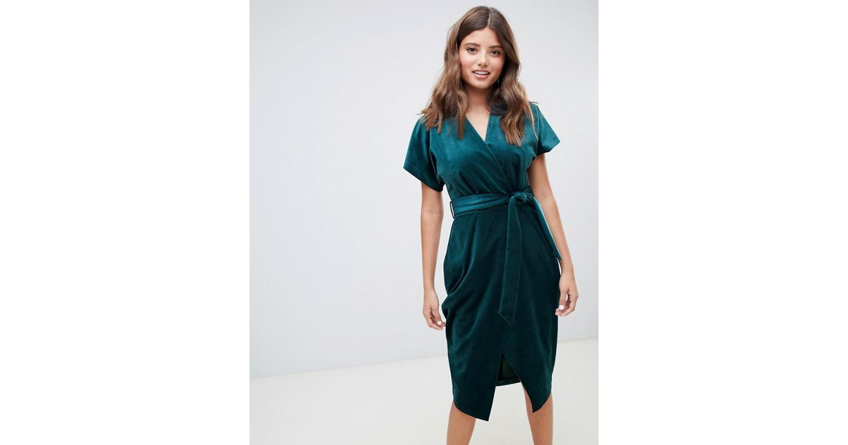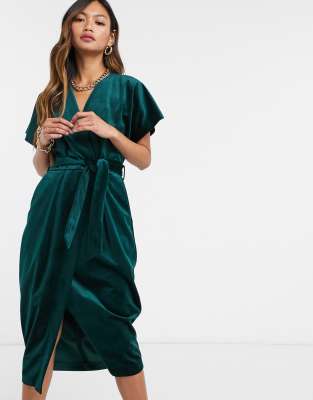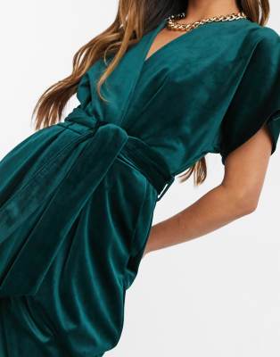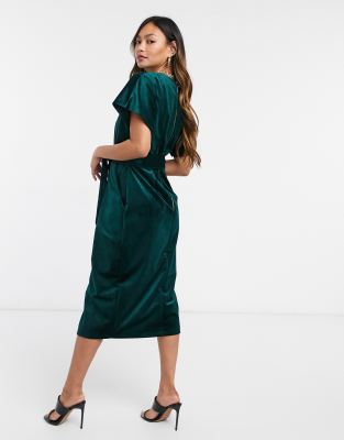 closet london wrap tie velvet midi dress in emerald green