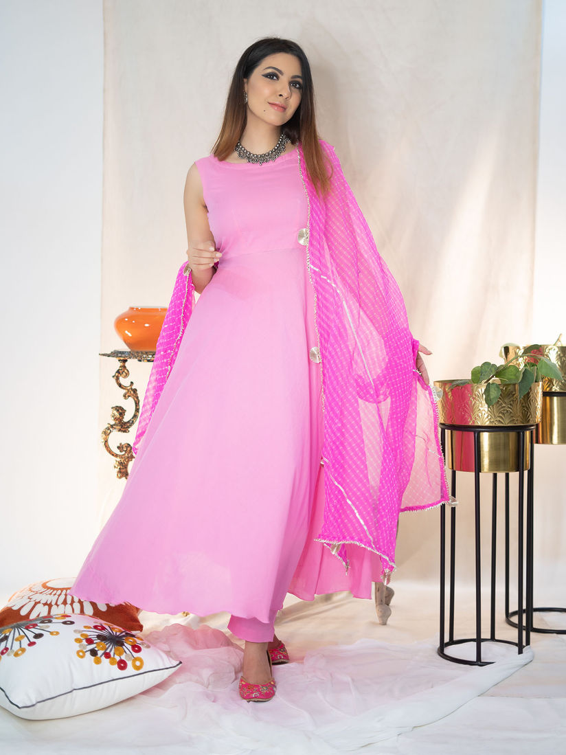 contrast with pink suit