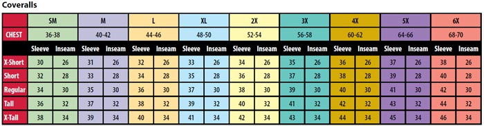 coverall sizes