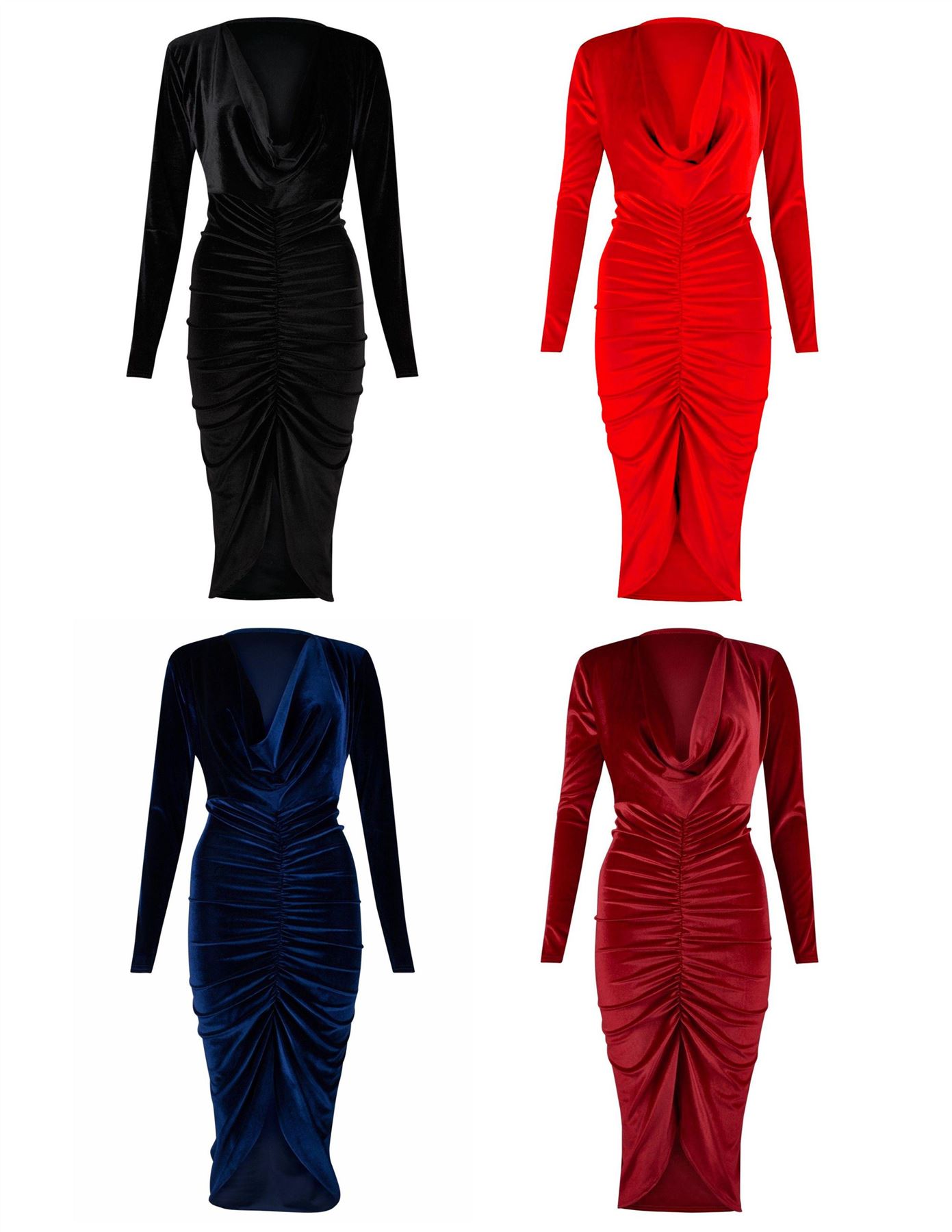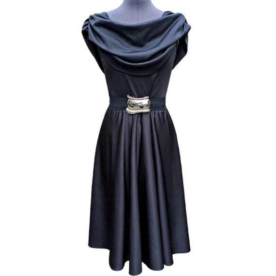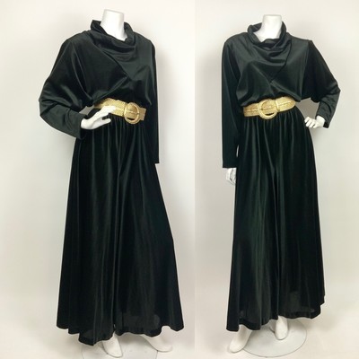 cowl neck velvet dress in disco black