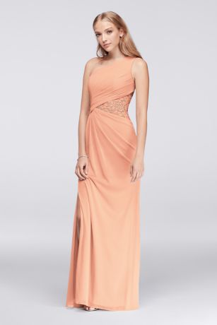 david's bridal one shoulder mesh