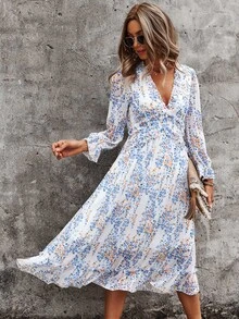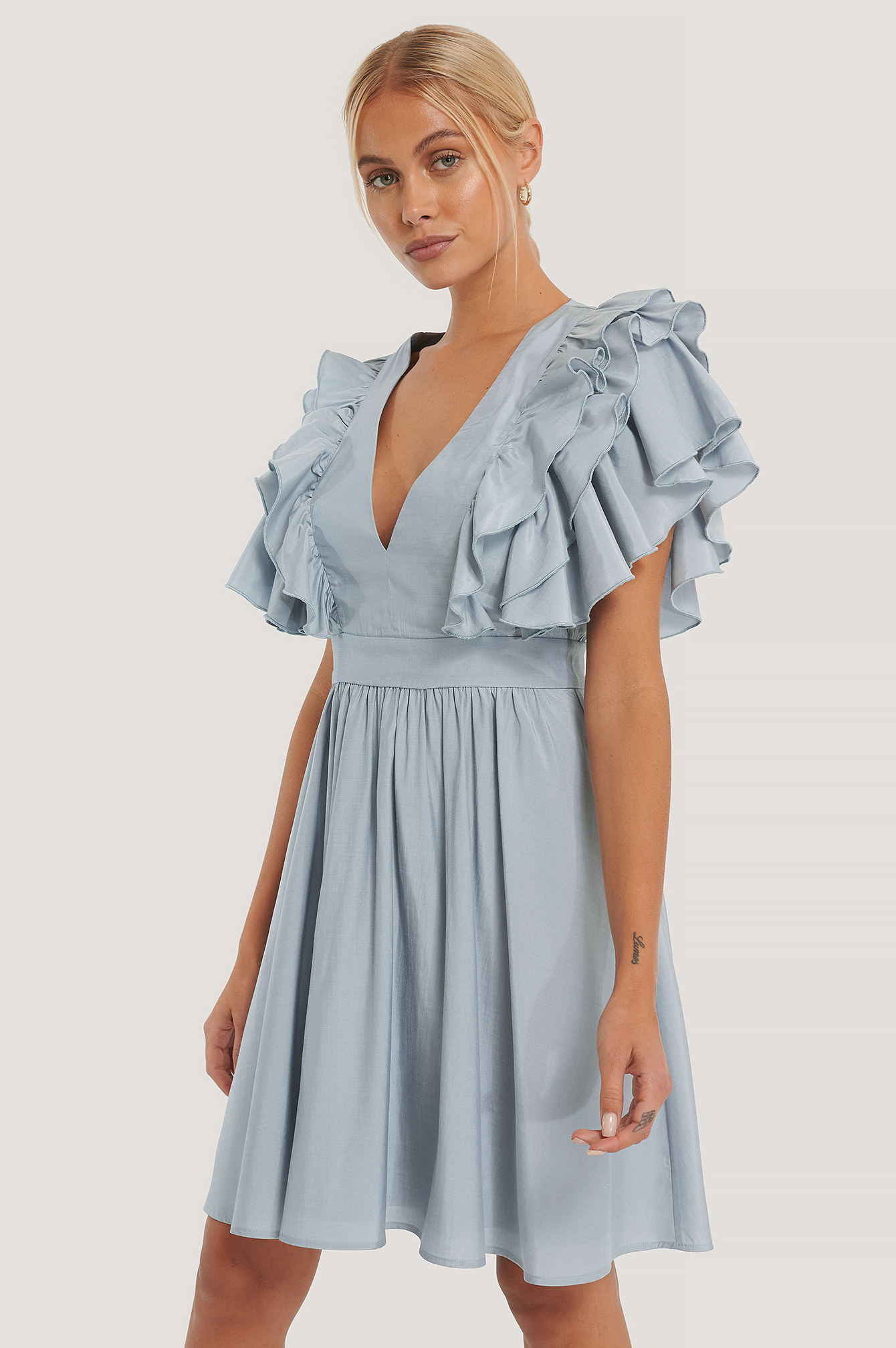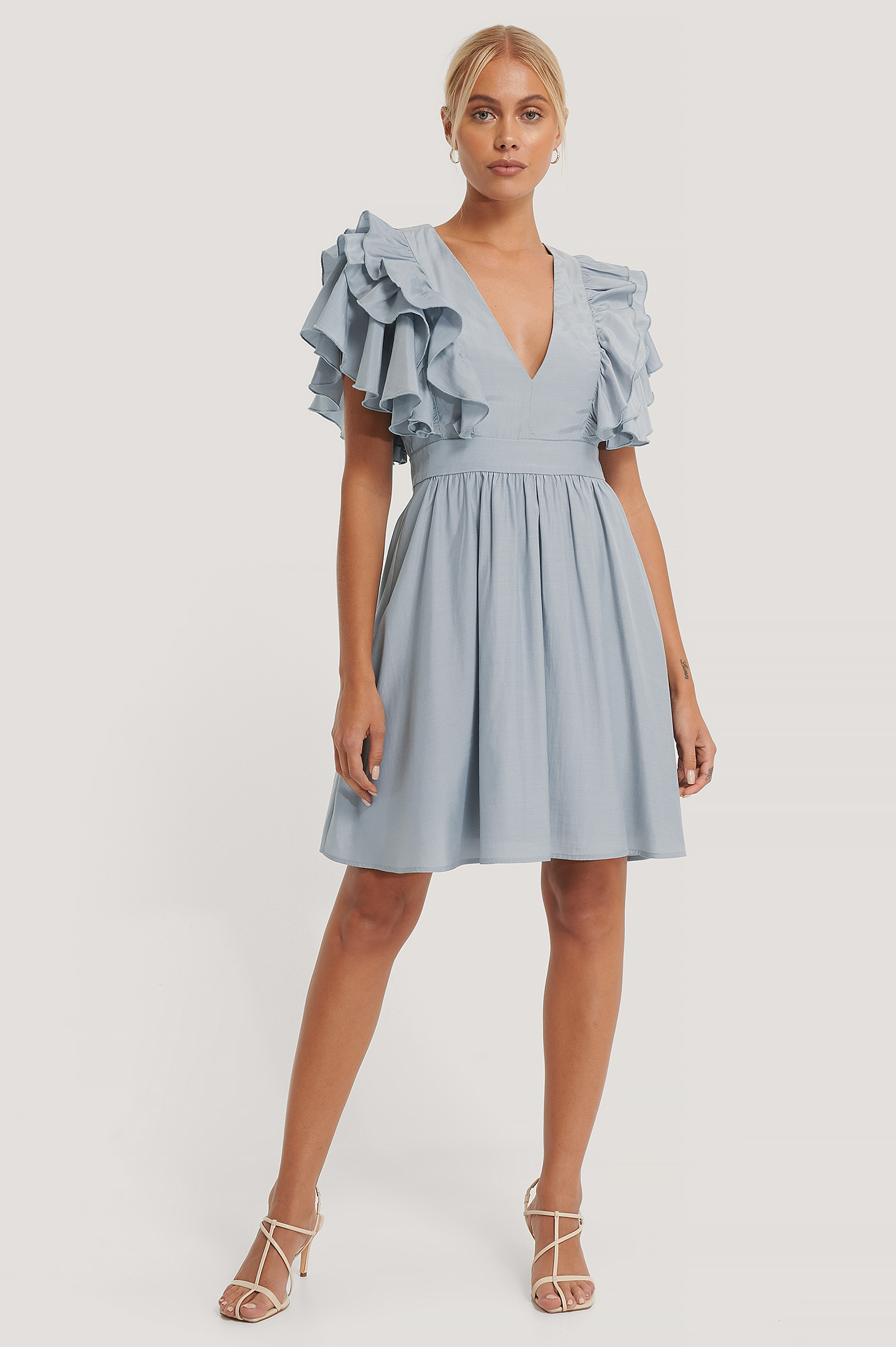 deep v ruffle dress