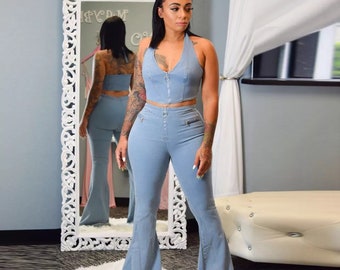 denim 2 piece outfit