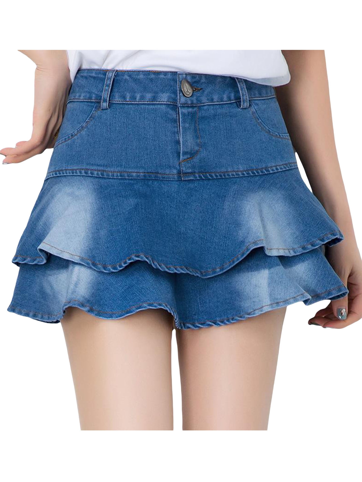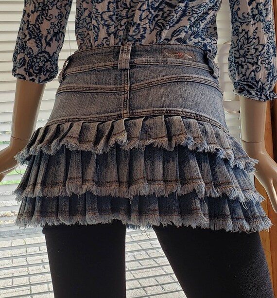 denim ruffle mini skirt