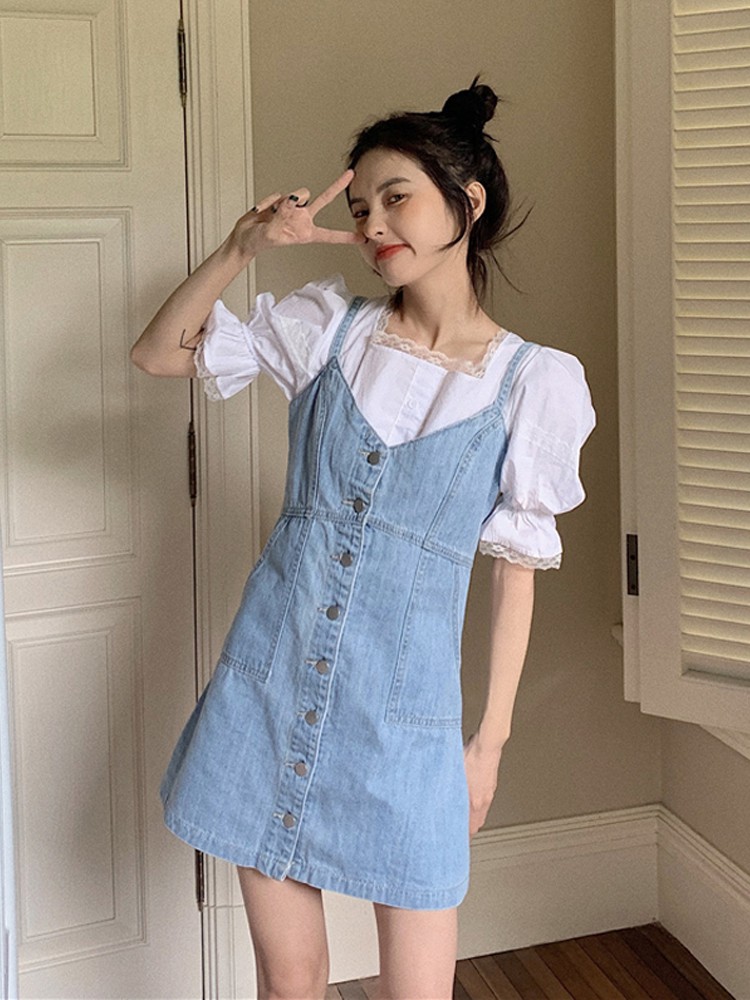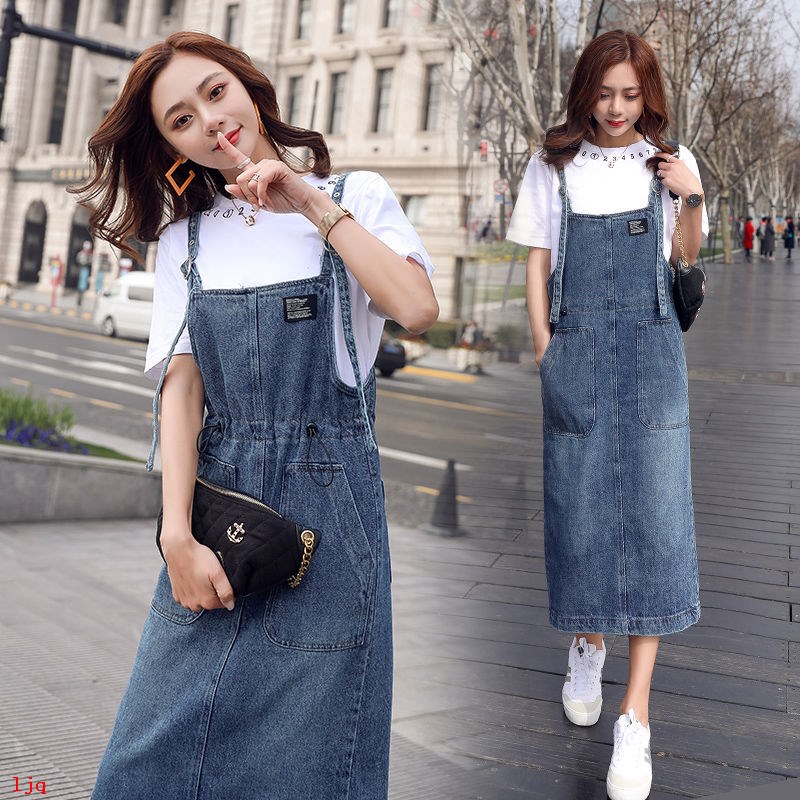 denim suspender skirt