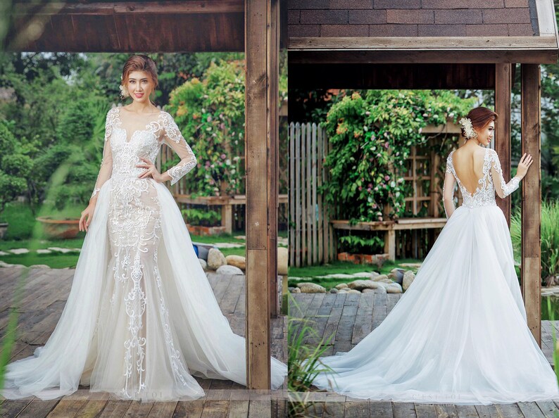 detachable overskirt wedding