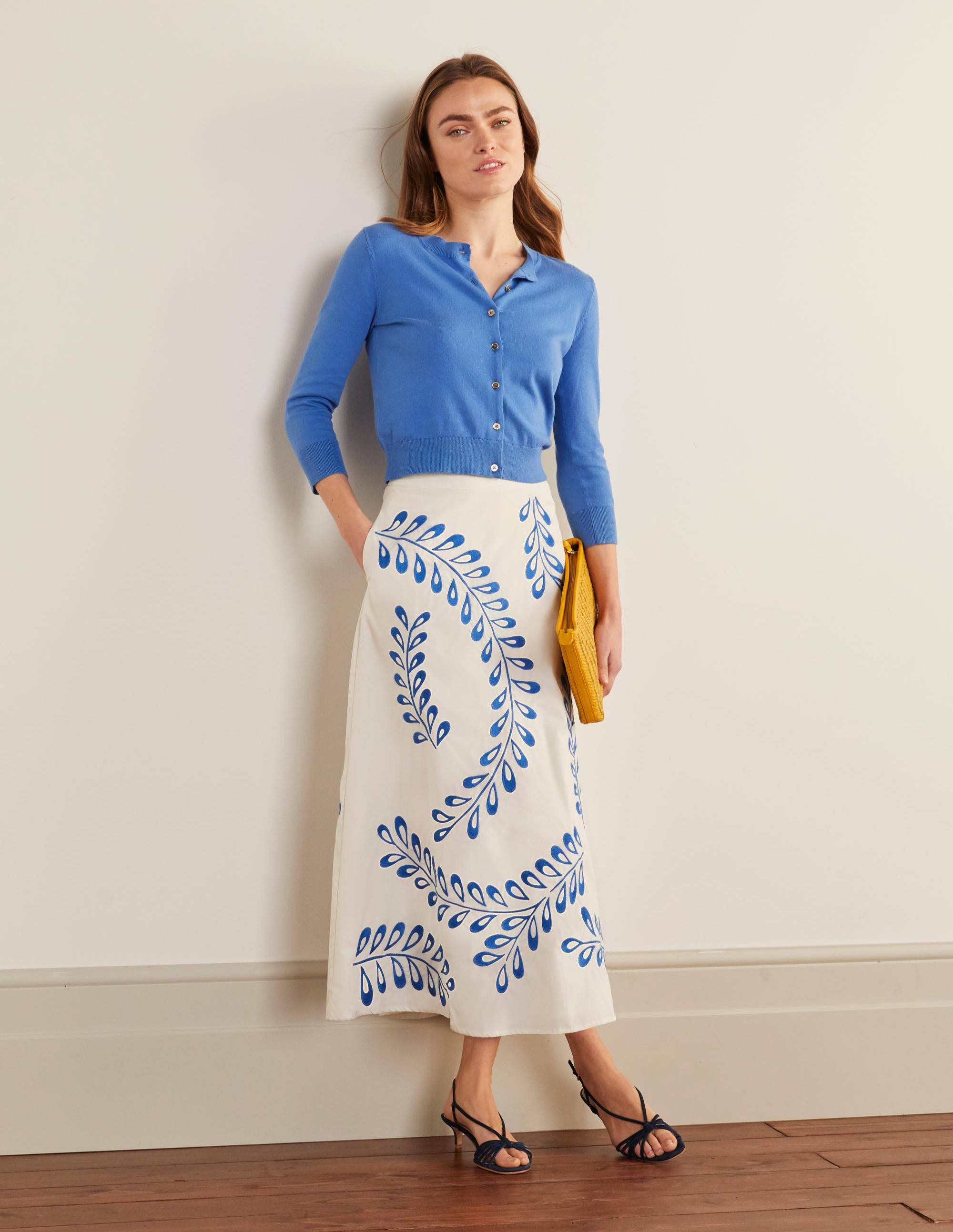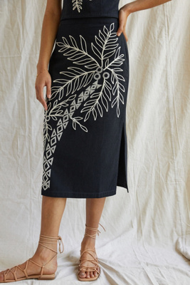 devi embroidered midi skirt