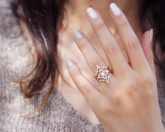 diamond cluster wedding ring sets