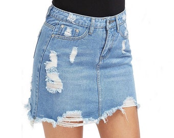 distressed jean skirts