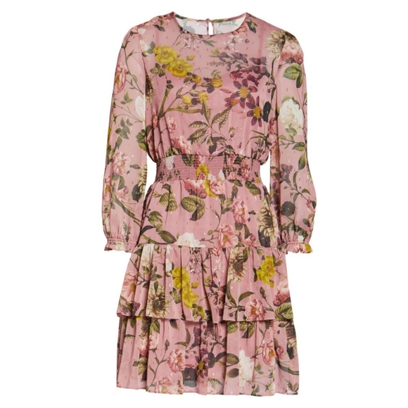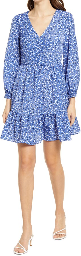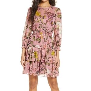 eliza j floral print balloon sleeve ruffle dress