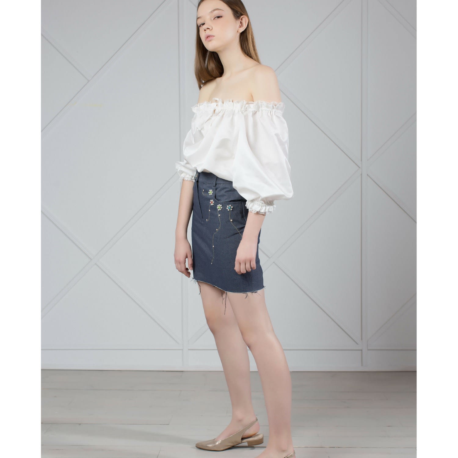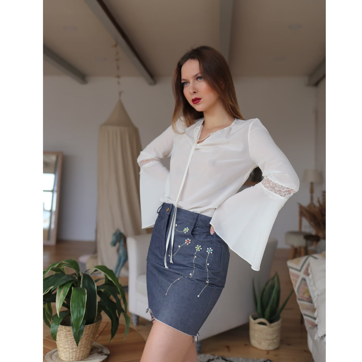 embellished denim skirt