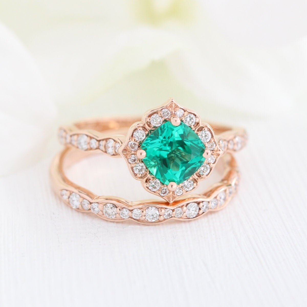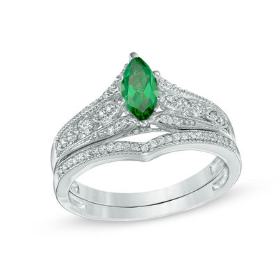 emerald diamond wedding set