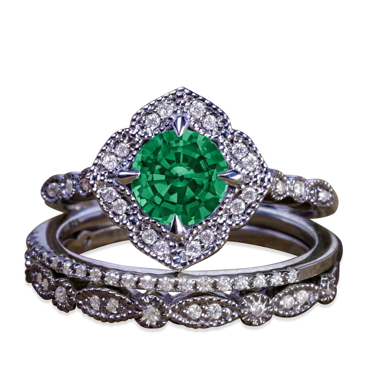 emerald green wedding ring set