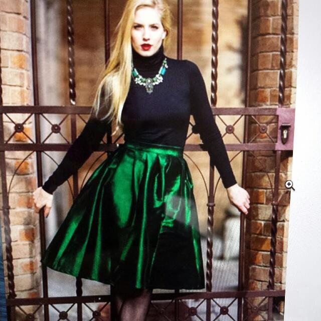 emerald satin skirt