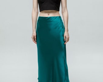 emerald silk skirt