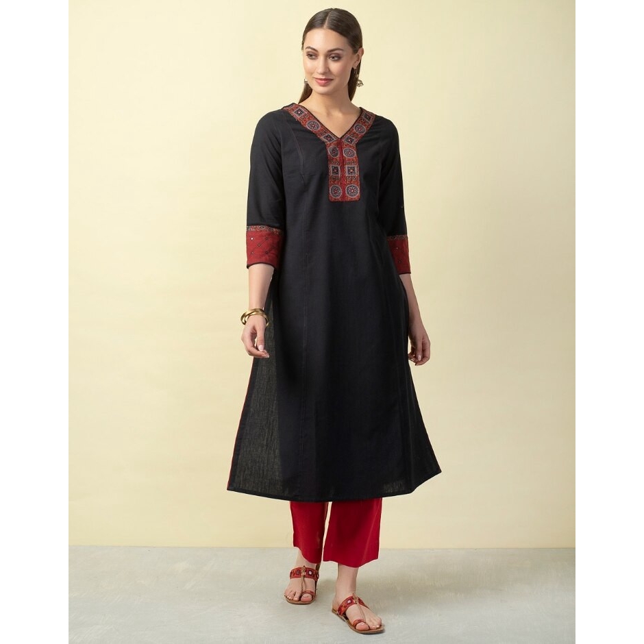 fabindia black silk kurta