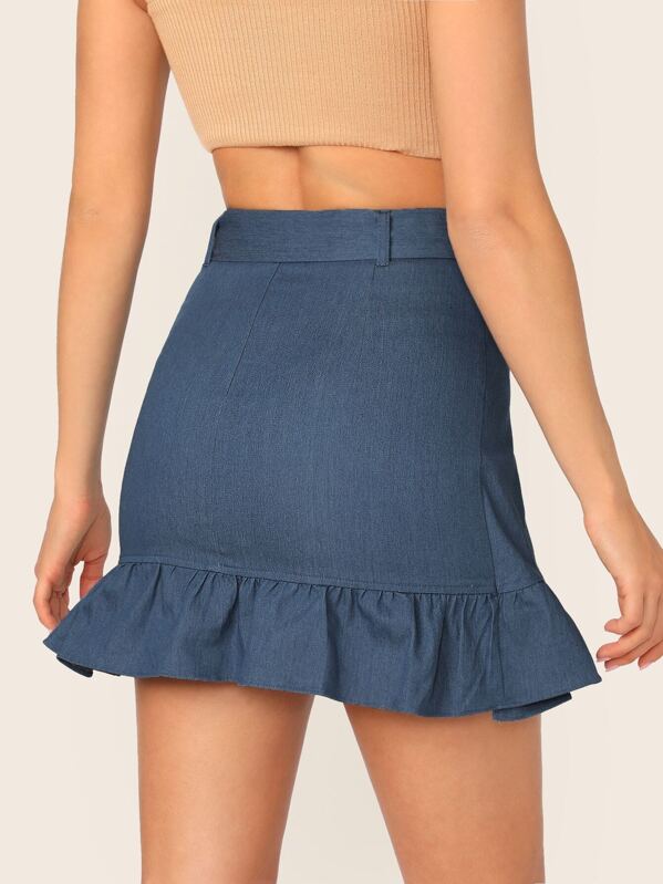 flared denim mini skirt