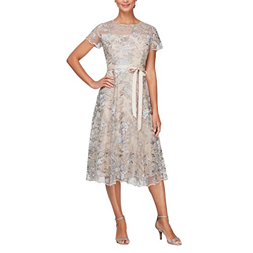 flirty floral tea length dress by alex evenings