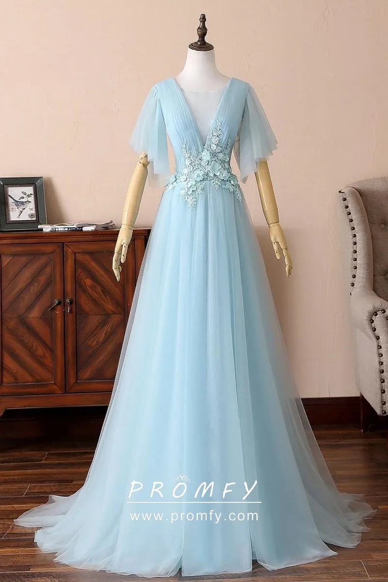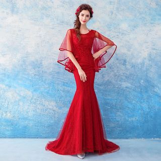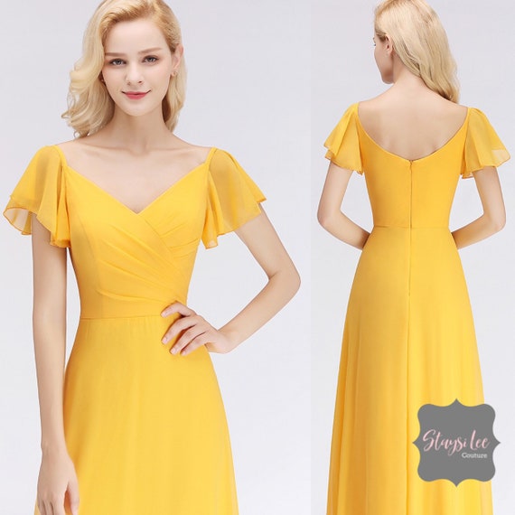 flutter sleeve evening dress