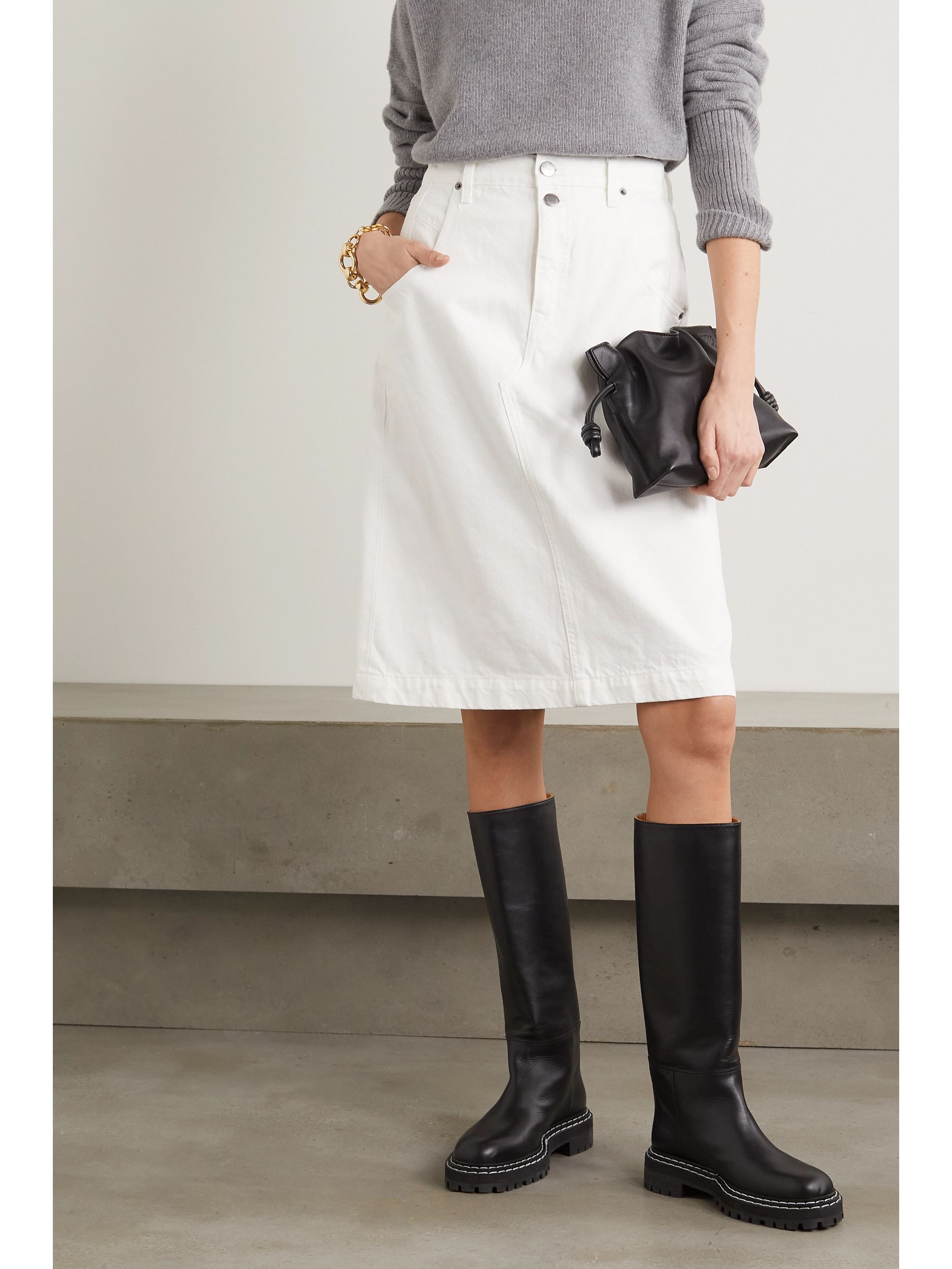 frame white denim skirt