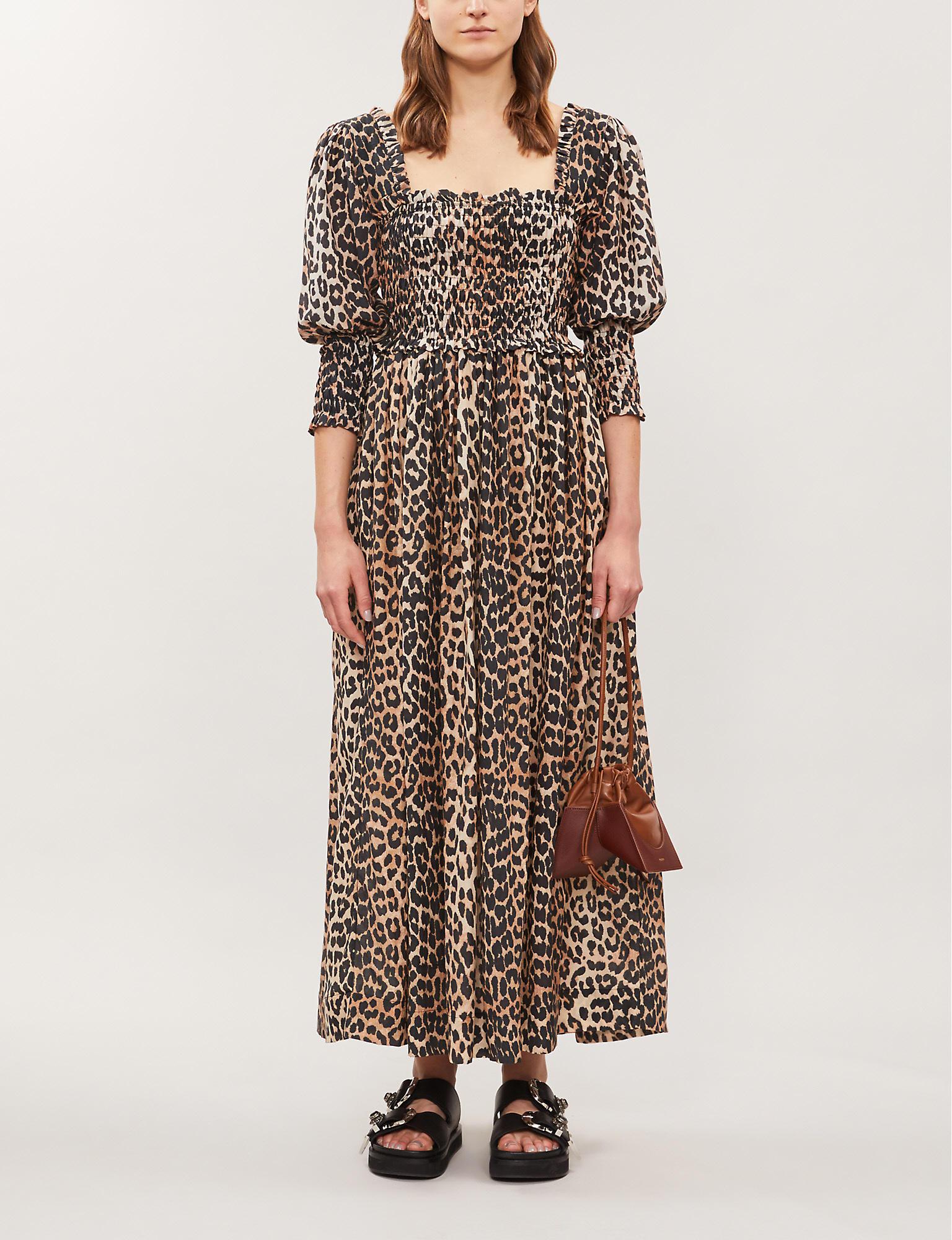 ganni cotton silk leopard