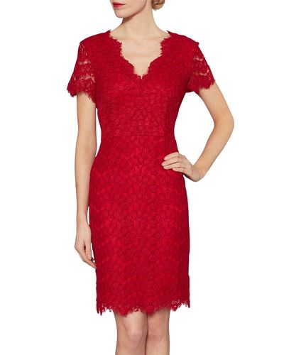 gina bacconi red lace dress