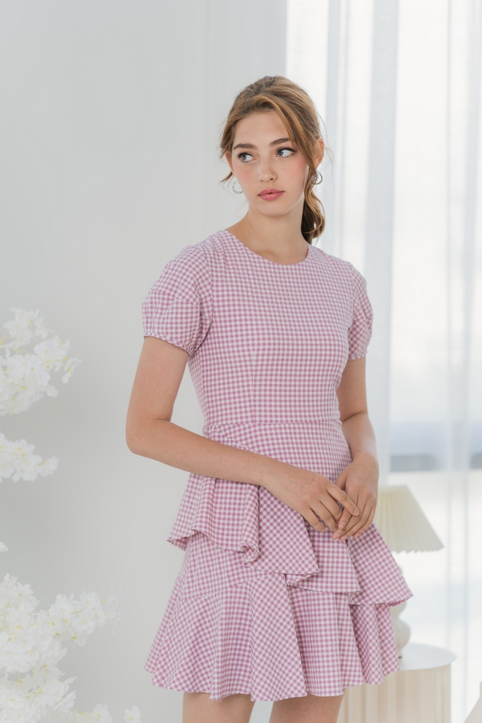gingham tiered dress