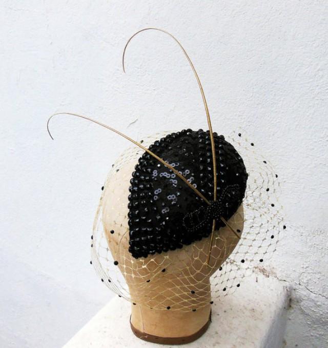 gold and black fascinator