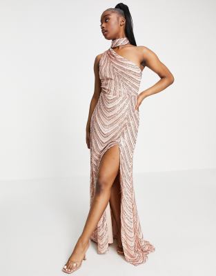 gold thigh split dress