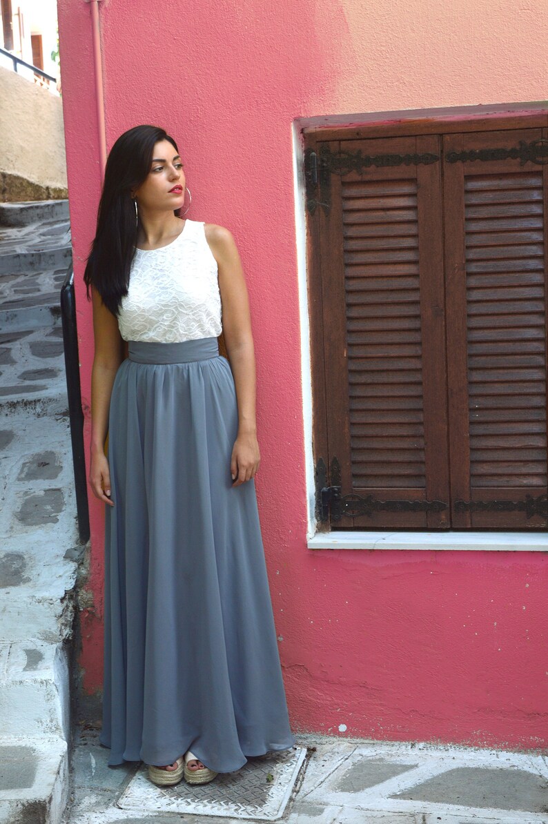 gray chiffon skirt