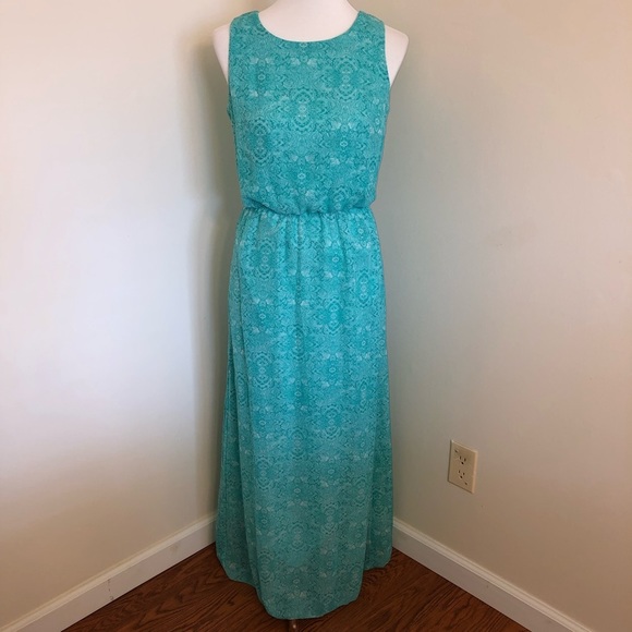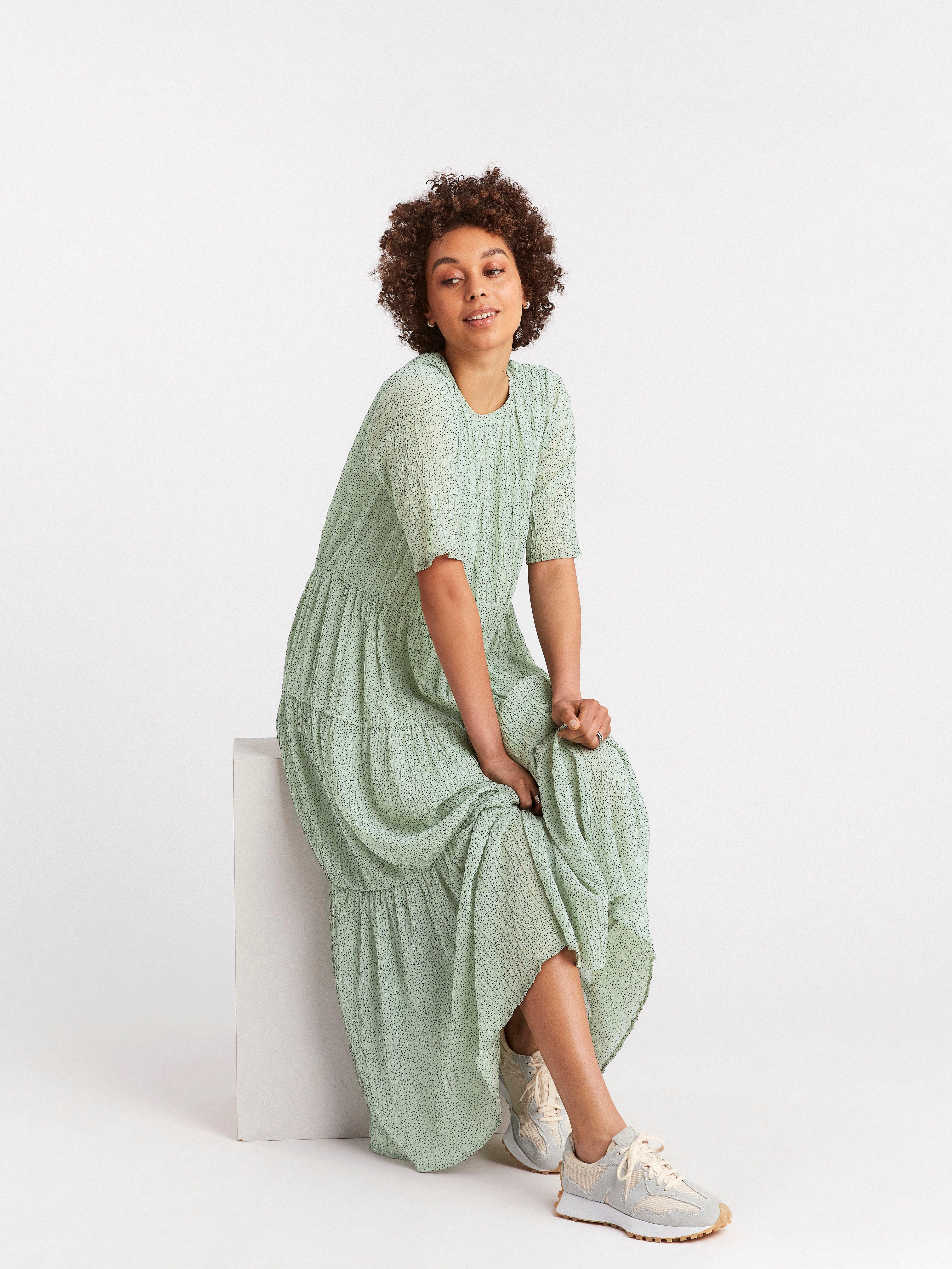 green patterned maxi dress